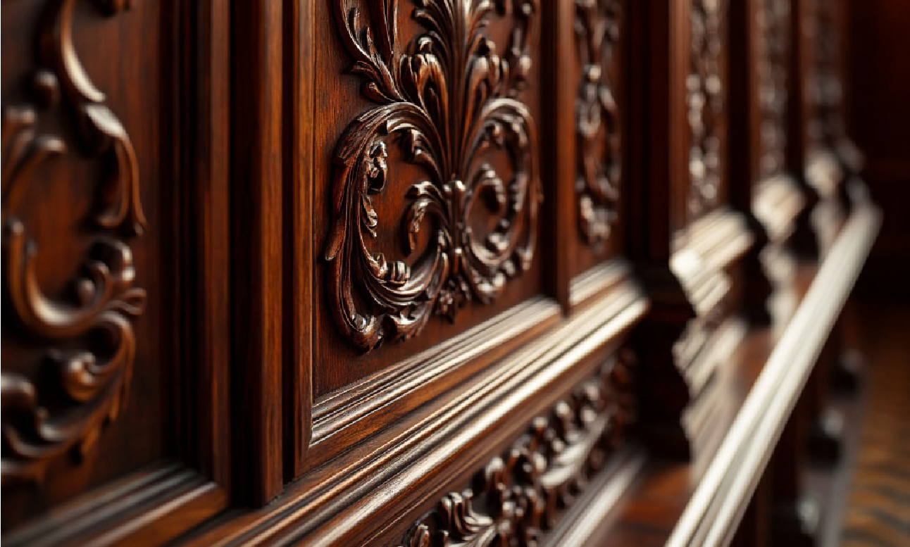 — Викторианская эпоха. Промышленная революция сделала производство деревянных панелей массовым. Появились станки, которые могли штамповать сложные резные элементы декора из более дешевых материалов. Панели из дуба и ореха стали доступны не только аристократии, но и разбогатевшей буржуазии.